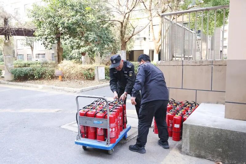 “曾经总看见灭火器放在那里,也不知道有没有用,这回看到作业人员来检测换新,咱们安心多了!”家住枫泾镇长城逸府79号楼的夏阿姨指着刚换上簇新标签的灭火器说。